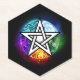 Pentagrama luminoso de dibujo artístico con cinco elementos mágicos, agua, tierra, fuego, astral, aire sobre fondo negro. Pentagrama de Wiccan. Wicca