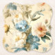 Diseño floral vintage en tonos azules y dorados que incluye rosas, margaritas y flores incipientes adornadas con nostalgia.