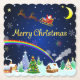 Hermosos paisajes de nieve con árboles de Navidad, casas, un hombre de nieve, y un arcoiris sobre la nieve que cae del cielo. Santa Claus sobrevolando la luna creciente en la noche de los Navidades.
