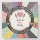 Esta montaña de piedra personalizada presenta un borde de bonito con motivos para parecerse a un tejido de paja cosida y lee Feliz 60 aniversario alrededor de la llanta. Personalizar para un novio y novia especial incluyendo sus nombres y fecha de boda en el centro. Los corazones rosados y una variedad de coloridos patrones florales, de punto y de rayas añaden un ambiente campestre acogedor.