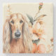 This stone coaster is a great and classy gift idea to anyone who works at a desk, has 'their' spot on the sofa or just adores the dog breed. A beautiful watercolor portrait of an Afghan Hound dog sitting against lovely peach colored lilies flowers.