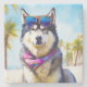 Posavasos De Piedra Alaska Malamute en la playa, regalo de verano