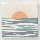 Resumen ilustracion de la salida del sol con sol naranja y decoración de olas de mar azul, blanco y turquesa