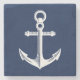 Un trivet con un tema náutico único. Ofrece un ancla centrada en el centro en una marina de guerra vibrante y un esquema de color blanco.