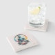Una estatua de Buda está sentada en medio de un colorido círculo zen, con una flor de loto.