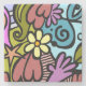 Moderno Resumen Cubism Atractiva de mármol Art. (También viene en piedra caliza, travertina y arenisca.) El arte moderno multicolor presenta imágenes abstractas de flores, rostro, ojo, rayas y rollos en azul, verde, morado, amarillo, rosa polvoriento y roya delineados en gruesas líneas negras. Coloca el factor wow en la decoración de tu casa. Personalízalo cambiando o agregando texto e imágenes propias.