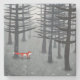 Un zorro rojo salvaje se encuentra entre los pinos de un bosque oscuro. Un cuadro paisajístico para los amantes de la fauna, la naturaleza y los animales.