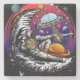 Arte vectorial original de un astronauta que tiene queso de luna y pasa una tajada a un alien. Creado en vector.