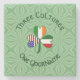 Este shamrock celebra las festividades de tres países: Italia, Irlanda (como el Día de San Patricio) y EEUU (como el Día de la Independencia o el 4 de Julio). En cada hoja hay una bandera diferente. Se ve la bandera italiana, la bandera irlandesa y la bandera de los Estados Unidos de América. Encima del shamrock se pueden leer TRES CULTURAS. Debajo, se lee ONE YOURNAME. Agregue su nombre en el lugar correcto para personalizar. Para hacer un regalo personalizado, agregue el nombre de otra persona. Las palabras aparecen en verde oscuro, estilo celta, letras circulares. Todo ello sobre un fondo de cuadrados verdes y claros.