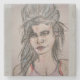 Un chica con peinado de colmena caminando por la calle desde un dibujo original de un lápiz de color