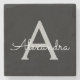 Posavasos De Piedra Black Silver Modern Script Girly Monograma Nombre