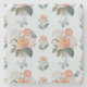 Das Bild zeigt ein elegantes, sich wiederholendes Muster aus üppigen Blumen in warmen Orangetönen und zarten Rosa-Nuancen, kombiniert mit grünen Blättern und roten Beeren. Schmetterlinge schweben sanft zwischen den Blüten, was dem Design eine lebendige und friedliche Atmosphäre verleiht. Auf einem tiefschwarzen Hintergrund kommen die Farben besonders zur Geltung, was ein Gefühl von Luxus und Naturverbundenheit vermittelt.