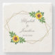 El diseño presenta girasoles y hojas botánicas sobre un marco geométrico impreso de color dorado.