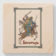 Representación de una batalla entre un bogatyr ruso y un guerrero asiático, ambos a caballo. También aparece un texto en cirílico (ruso) que dice "Б о г а ы р" (Bogatyr). Bogatyri son personajes heroicos encontrados en épicas eslavas medievales. Son similares a los caballeros andantes de la literatura occidental. La mayoría de las historias sobre bogatyri giran alrededor de la corte de Vladimir I de Kiev (958-1015). Se presume que algunos bogatyri son figuras históricas. Bogatyri protegía la tierra y el pueblo rusos contra los invasores, especialmente los tártaros. A algunos se les atribuían poderes y fortalezas que eran casi divinos. Esta imagen se adapta a un ilustracion de dibujo de línea blanca y negra en "П о в е с ь・ sni Bursa Burn Bursa Burn BurnBurn" (Un cuento de héroes brillantes BurnBurn BurnBurn Burn BurnBurnBurn" (Una historia de héroes brillantes". Ciudad Kiev y el gran azote de la tierra rusa) de Tamara Likhiotal; publicado en la URSS en 1974.