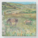 Pintura de acuarela, capturando una escena de prado de verano, con dos caballos y campos flotantes.