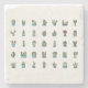 Estilo moderno y trendy de posavasos de mármol con ilustración botánica linda. Dibujado a mano 35 cactus y suculentas diferentes en macetas azules.