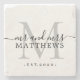 Elegante posavasos de piedra con monograma negro, con el texto sr y sra y su apellido de casados y año de establecimiento en elegante letra manuscrita caligráfica en negro con un monograma gris plateado. Simplemente agregue su nombre, monograma y año de establecimiento debajo. Diseño elegante y regalo de lujo perfecto para la pareja recién casada. Si necesita ayuda o productos coincidentes, por favor contáctenos a través del chat de nuestra tienda. Estamos encantados de ayudarlo a hacer que su boda sea el día más hermoso. Diseñado exclusivamente para usted por Happy Dolphin Studio.