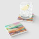 Esta colorida montaña rusa abstracta cuenta con un paisaje suroeste de vibrantes naranjas, verdes, rosas y moradas.