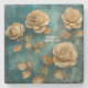 Posavasos De Piedra Create Your Own Teal & Gold Roses Floral