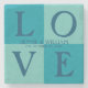 Las letras AMOR y sus nombres y fecha de boda en elegante letra navy (cambiar a cualquier color) en un fondo de cuadrados turquesa y azul. Cambie los colores a cualquier cosa para que se ajuste a la decoración de su hogar o regale como regalo de boda. regalo de aniversario, regalo de fiesta de compromiso.