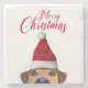 Posavasos De Piedra Curioso perro gracioso con Santa Hat