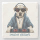 Un DJ de perros con gafas de sol y una capucha azul, manejando con habilidad las cubiertas con un ambiente fresco y compuesto.