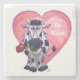 Desfile Animal Romántico Cow Love and Hearts Valentine's Day Gifts and Accessories creado por Animal Parade. En esta obra de arte se ve la obra de una linda vaca blanca y negra sosteniendo a un rosa de bonito en la boca con los corazones púrpura, rojo y rosado sobre ella pintados por el talentoso artista Traci Van Wagoner. Nuestro divertido arte de vaca seguramente traerá una sonrisa a todos los amantes de los animales, los amantes de las vacas, los amantes del romance, los amantes del corazón y los amantes de las rosas rojas de todas las edades. Di que te amo con nuestra linda vaca llevando una rosa roja bonito hoy.