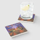 Un práctico de costa de piedra a añadir a sus decoraciones de Halloween con mi imagen original de 2 calabazas juguetonas el la noche de Halloween con una Luna Llena detrás de ellas y de hojas de la caída del vuelo. El texto adaptable dice "feliz Halloween!"