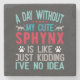 El dueño del gato canadiense Sphynx dice - "un día sin mi gato Sphynx es como". Diseño estético de tipografía con temática de gatito negro Sfinx. Mejor apto para dueños de gatos Sfinx sin pelo, amantes de gatos Sphynx canadienses, mamás de gatos, papás de gato, etc. para cumpleaños o Navidades.