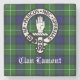 Emblema de la Cresta del Clan Escocés Lamont y texto sobre fondo de tartán.