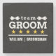 Regalo personalizado para la fiesta de boda. Celebre a sus padrinos con estilo con este posavasos de piedra audaz y elegante "Team Groom" que presenta corbatas de moño blancas, estrellas doradas y detalles de nombre y función personalizados. Perfecto como recuerdo o favor de boda, este posavasos duradero y elegante añade un toque personal a las despedidas de soltero, cenas de ensayo o celebraciones del día de la boda. Es una forma excepcional de honrar a los chicos que te respaldan en el gran día.
