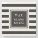 Elegante montaña de monograma personalizada de iniciales con un patrón rayado en blanco y negro con sus iniciales y nombre de familia con su fecha establecida en un cuadrado bordeado de negro con un texto blanco clásico. Diseñado por Thisisnotme©