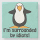 ¡Estoy rodeado de idiotas! Gracioso y sarcástico insulto con un pingüino blanco y negro con pies naranjas y un gráfico de pico con un color cian azul turquesa/verde. personalizable completo.