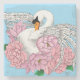 Un cisne blanco rodeado de flores rosas en el fondo de un azul