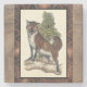 Esta huella rústica ilustra un zorro frente a un pino. Los colores están en la suave gama pastel y el marco de la imagen tiene motivos tradicionales en la gama marrón. Estos diseños serían una adición perfecta a la decoración de su casa de campo.
