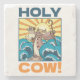 Una vaca divertida en una montaña rusa de piedra de novedad. Utilice "Personalice esta plantilla" para modificar el texto de "HOLY COW!" y crear un elemento único y personalizado. Juego de palabras con una vaca dramática en una bata, sosteniendo un sinvergüenza de pastor y un pergamino religioso, apareciendo olas con un arrebato dorado detrás.
