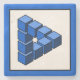 Sirva su bebida en esta montaña de piedra caliza con esta construcción de triángulo frío imposible. El famoso triángulo imposible de construcción en forma de cubos. Un triángulo imposible en forma de bloques azules. También conocida como transformación imposible o construcción imposible. Encontrarán muchos en internet, pero creo que el mío está muy bien ejecutado.