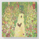 Monstruo de piedra con la pintura al óleo de Gustav Klimt Garden con gallos (1917). Dos gallinas marrones se encuentran en un camino al jardín. Hermosas flores rosas, rojas y blancas florecen a lo largo del camino. Un gran regalo para los amantes del arte Art Nouveau y austriaco.