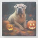 Posavasos De Piedra Halloween Shar Pei con calabazas aterradoras