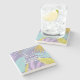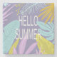 Fondo de lavanda con follaje tropical en tonos pastel azul, rosa y lima con guion personalizado "hola verano"