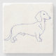 Klassisches Design in Blau-Weiß. Blaue Linienzeichnung der Hunderasse Dackel auf weißem Untergrund.