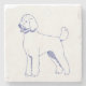 Klassisches Design in Blau-Weiß. Blaue Linienzeichnung der Hunderasse Goldendoodle auf weißem Untergrund.