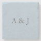 Posavasos de piedra cielo azul con iniciales personalizadas sencillas. Texto gris.