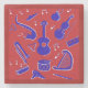 Este diseño es una mezcla de diferentes instrumentos musicales en azul y blanco con un fondo rojo. También encontrarás otros productos de la misma decoración para tu cuarto de baño. Esta imagen está disponible en una variedad de otros productos, sólo tienes que hacer clic en el enlace debajo de la foto cerca de 'Acerca de este diseño'.