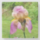 Cierre de un iris rosa y morado barbudo que muestra la barba amarilla