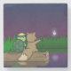 Posavasos De Piedra Kappa y Kitsune sentados en un estanque - Yokai ja