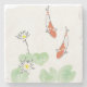 Una montaña rusa de piedra con una idílica pintura de la acuarela Zen de dos koi en un estanque koi con nenúfares de agua blanca y toallitas de nenúfares.