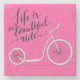 La vida es un paseo hermoso - moderna caligrafía moderna manuscrita, cita inspiradora de la tarjeta sobre fondo rosa con bicicleta patada | Bigstock® - Todos los derechos reservados.