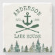 Nautical Lake House Family Name Anchor Oars Marble Coaster incluye acuarelas verdes pinos