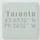 Las coordenadas de longitud y latitud de Toronto, Ontario Canadá en fuentes con problemas le dan un aspecto urbano moderno